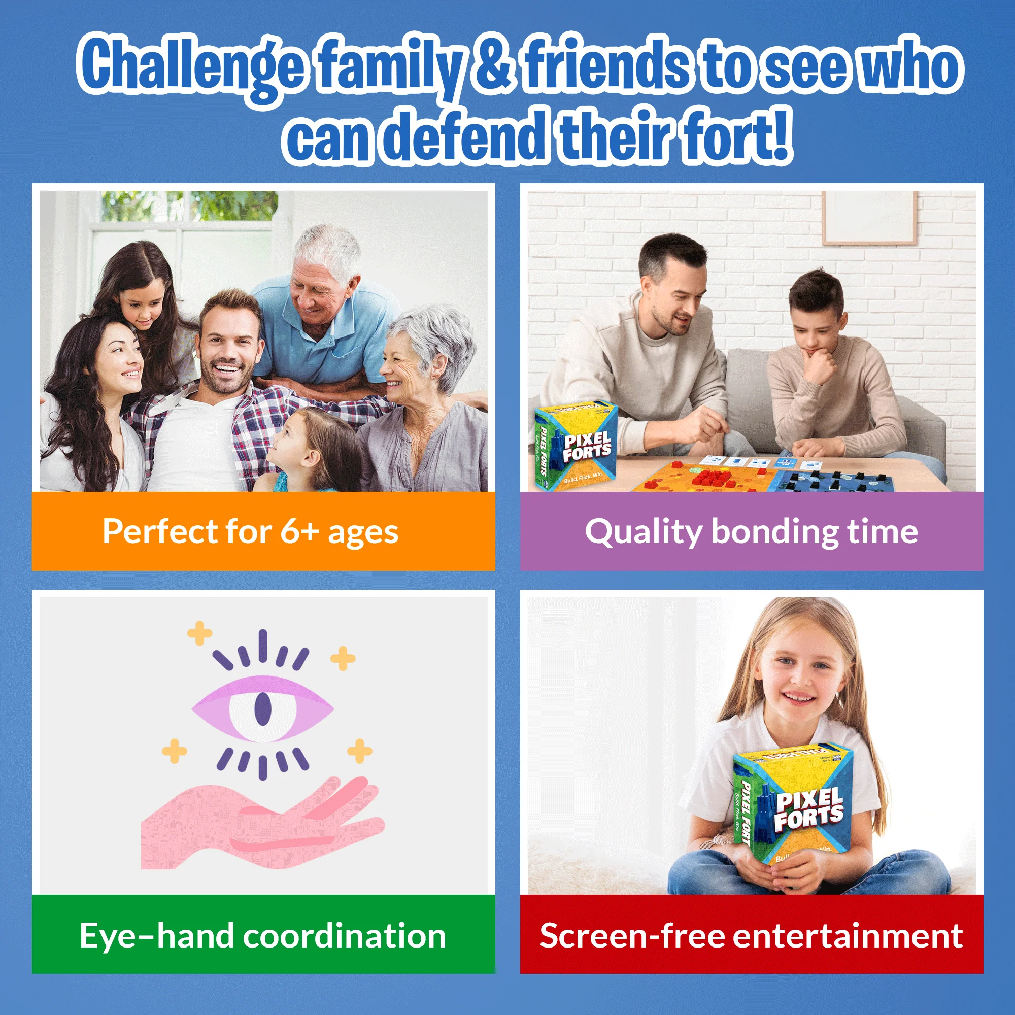 🧠ENHANCES COGNITIVE & DEXTERITY SKILLS: Our Pixel Fort table game is not just a social game, but a brain game too! Naturally learn & improve your problem-solving, strategic planning, and pattern recognition skills in the most amusing way possible.
